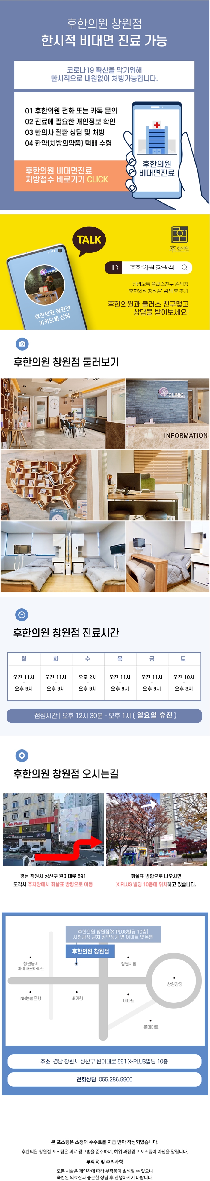 치료 방안에 대한 구체적인 안내도 받아 보고 싶다는 생각이 들 것으로 사료되었습니다. 본원에서는 겪고 있는 문제 상태에 따라서 한약 처방, 추나, 약침, 부항, 뜸 등의 여러 가지 한방치료를 시행 중에 있다고 안내를 드리오니 창원용호동 야간진료한의원으로 내원을 하실 생각이라면 같이 참고를 해 주시면 되겠습니다.