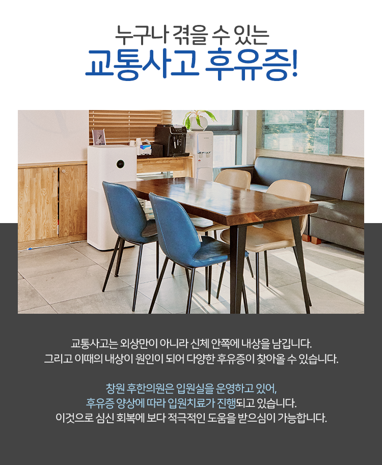 목, 어깨, 허리 등 특정한 곳이 아픈 것도 후유증일 수 있었고 속이 쓰리고 머리가 어질거리는 것 역시 후유증의 한 종류일 수 있었습니다. 그런가 하면 우울해지고 무력해지는 등의 증상마저도 후유증의 한 종류로 관측이 되고 있다고 성산구 교통사고한의원은 말하였습니다.